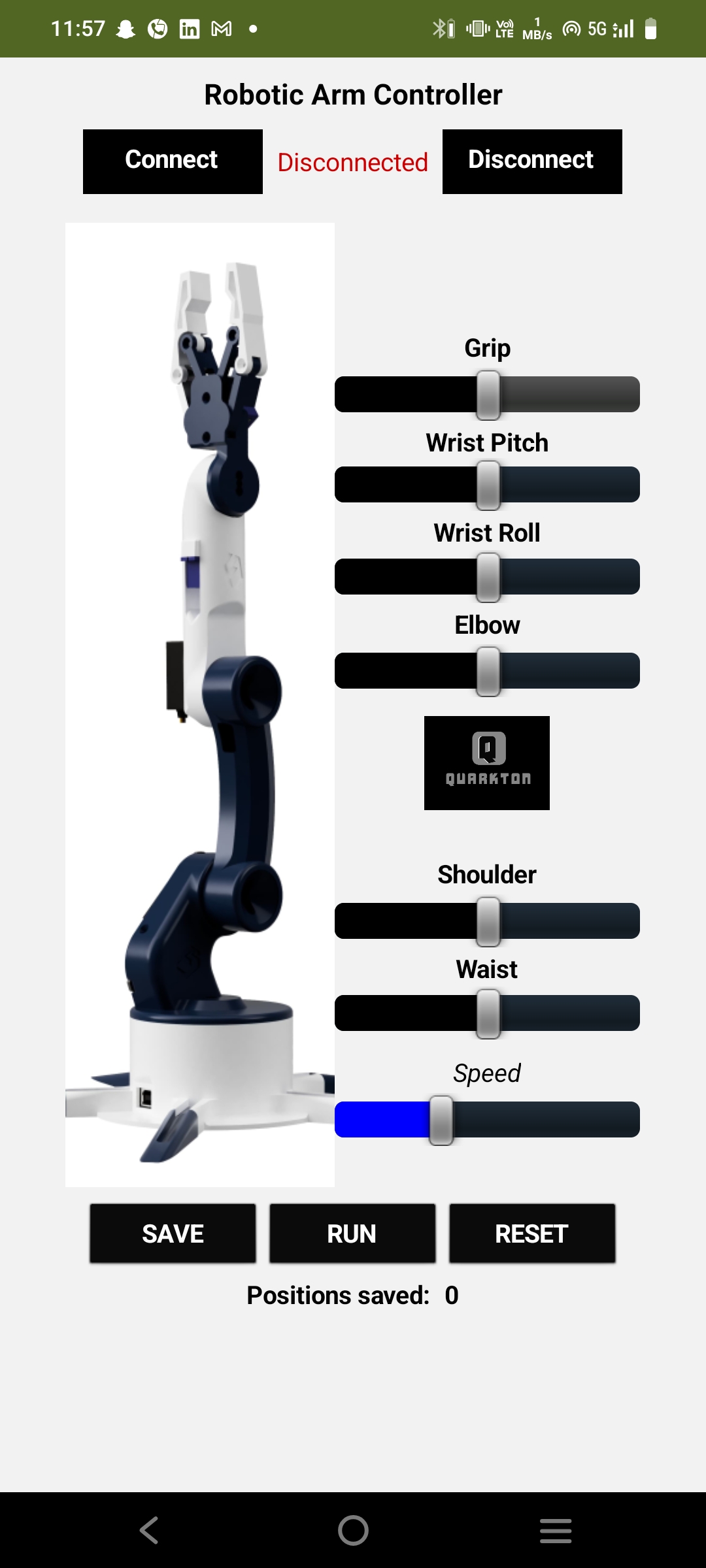 - Ensures real-time control of the robotic arm via Bluetooth.