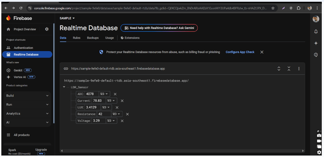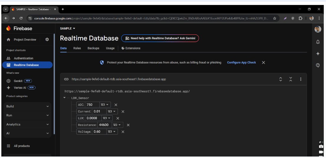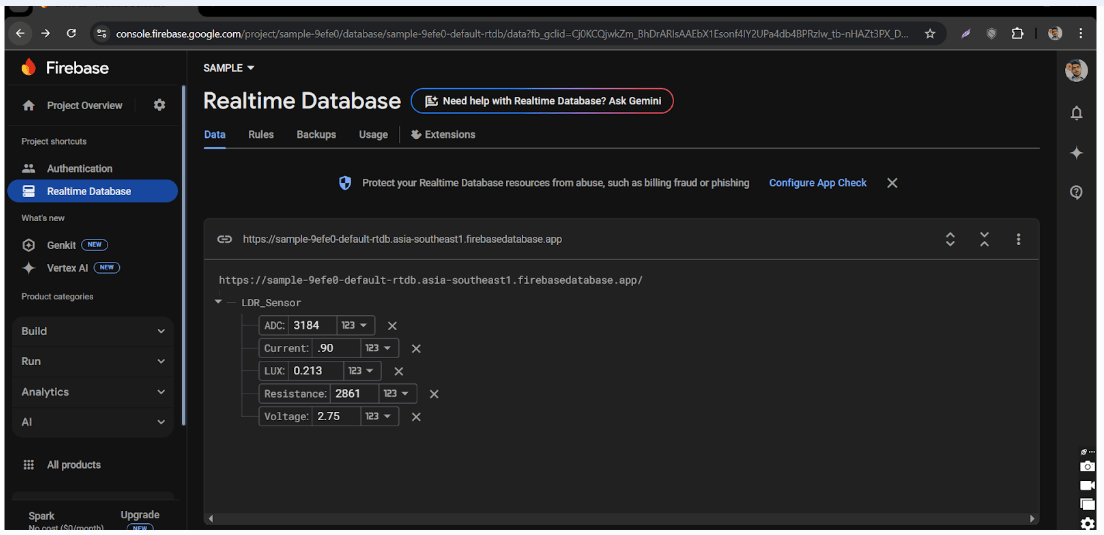 Firebase.RTDB.setFloat(&fbdo, "LDR_Sensor/LUX", lux);