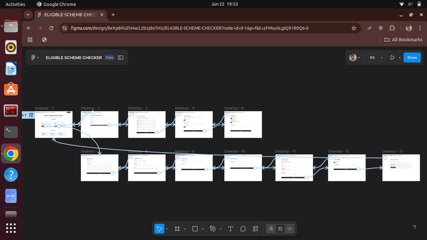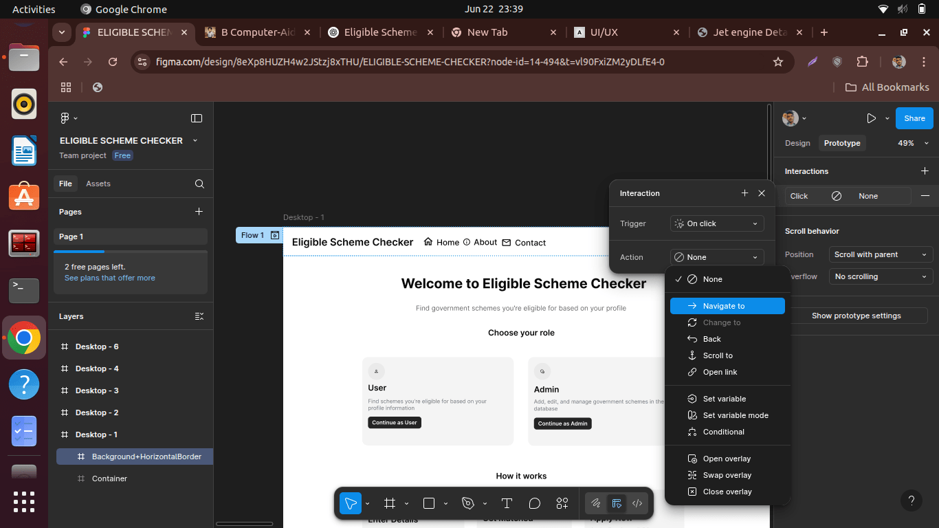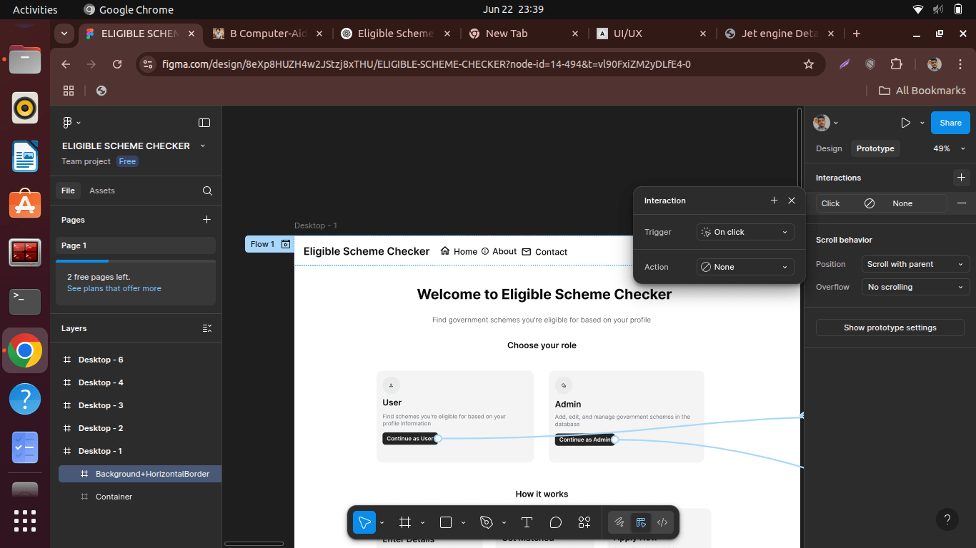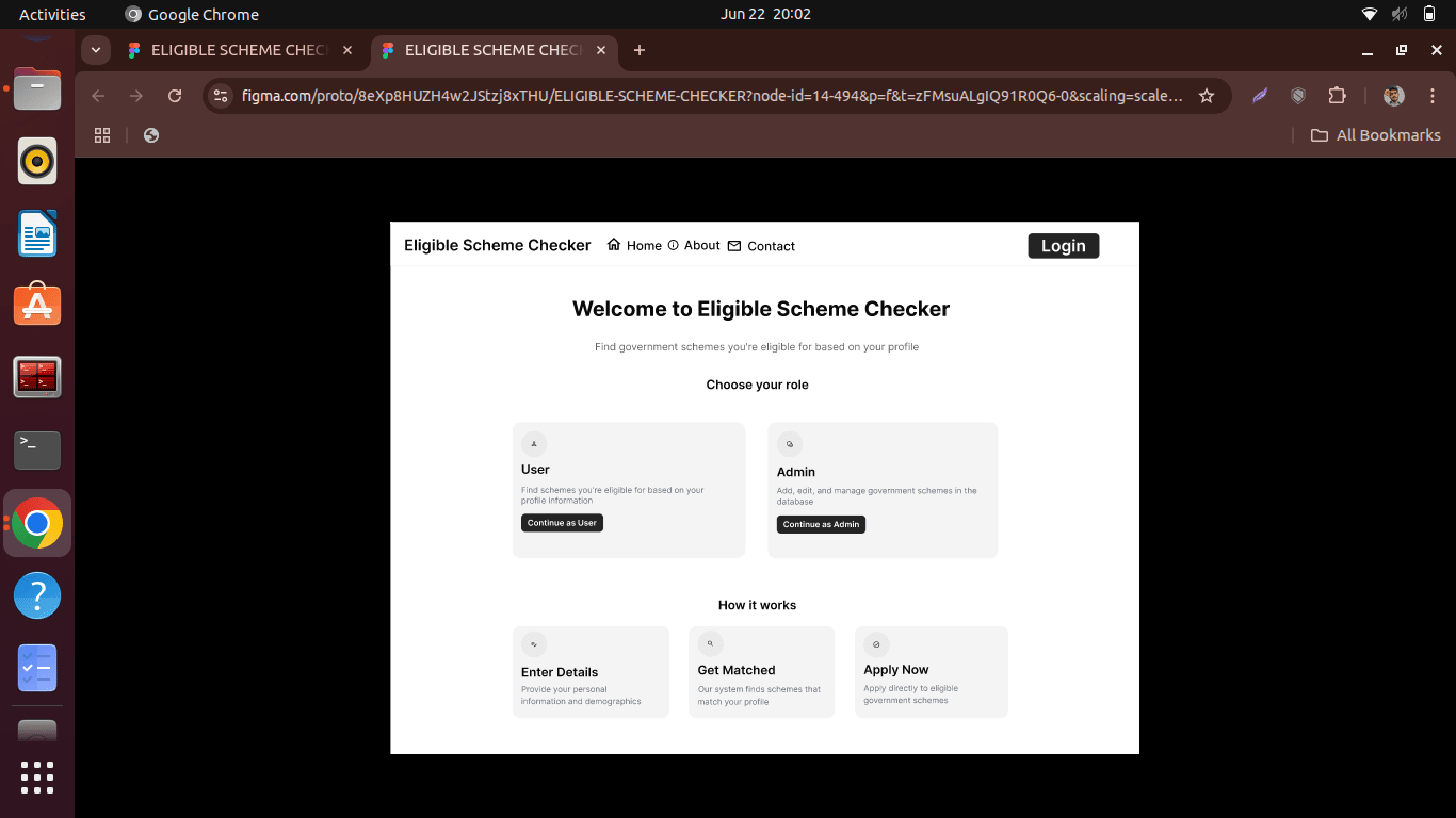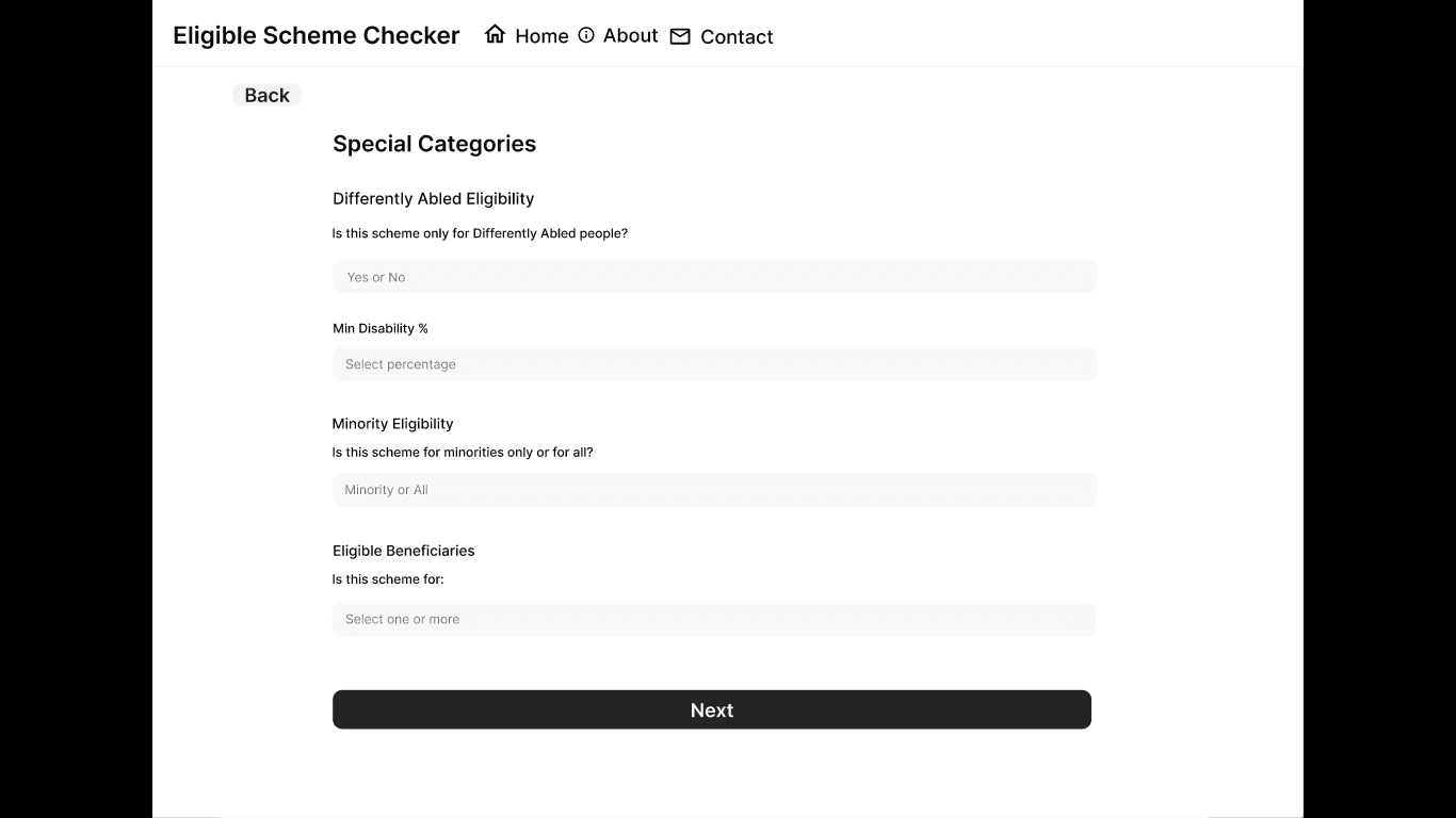 As part of my journey into UI/UX design, I took on an assignment to design a desktop-based web interface that helps users identify the government schemes they are eligible for, based on personal data such as age, gender, income, marital status, and more. The interface also includes an admin dashboard for publishing and managing new schemes.