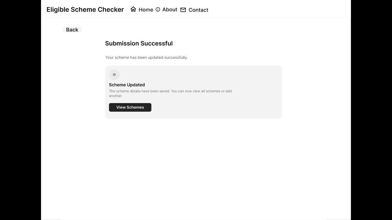 - Admin functionality for data input and scheme publishing