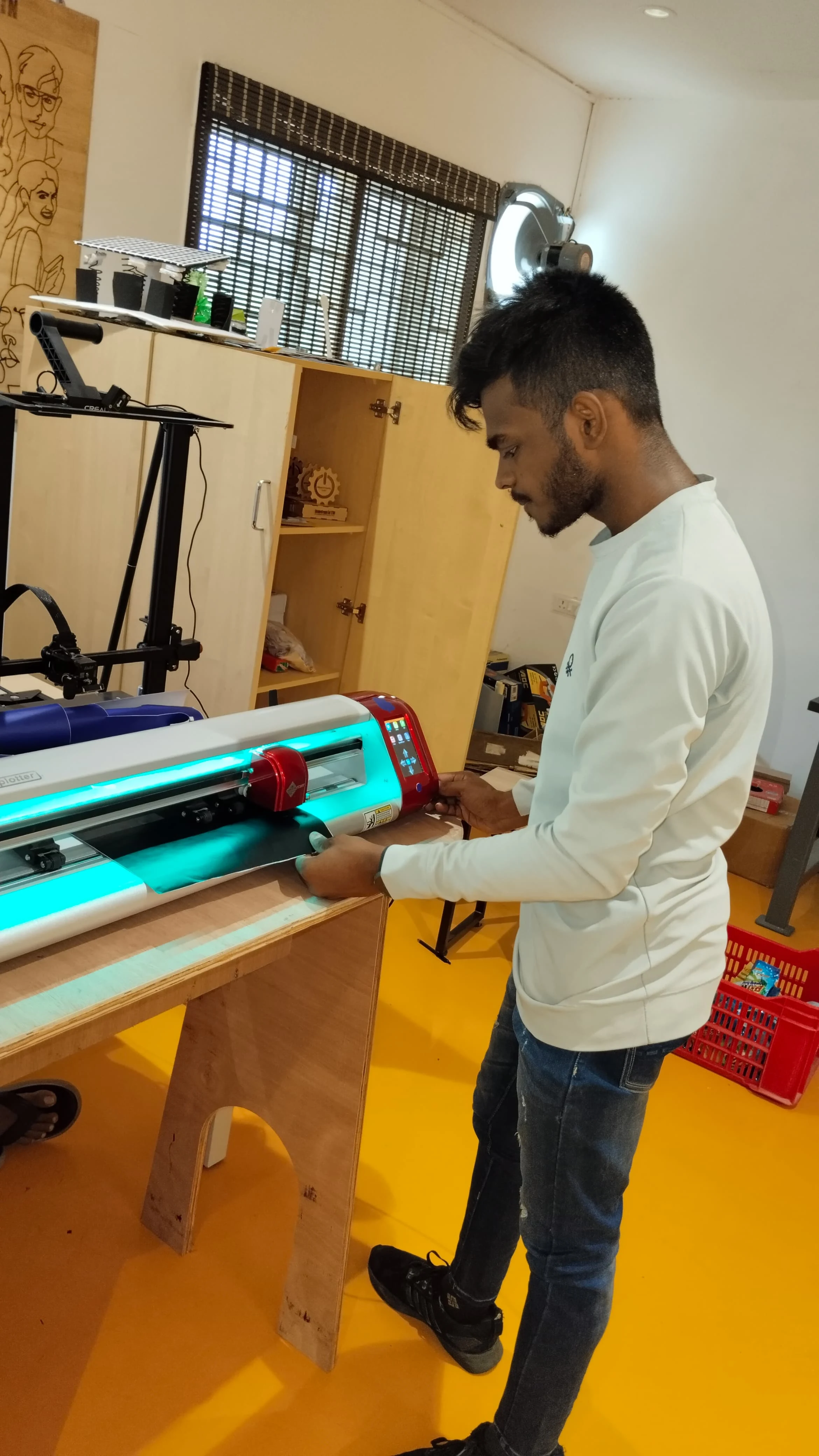 This project helped me understand the end-to-end process of digital vector design, machine operation, material handling, and final sticker application.