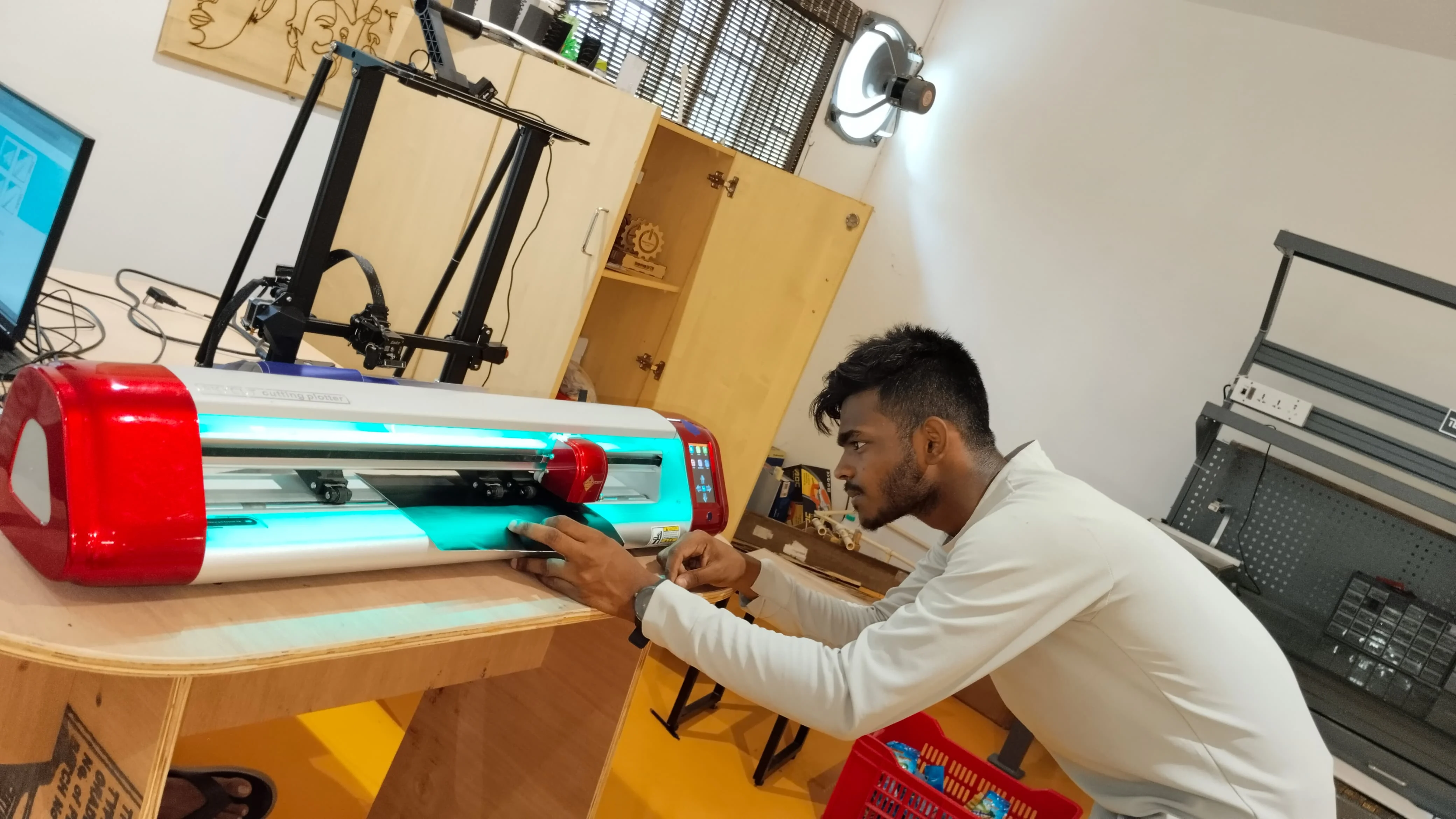 As part of my hands-on journey in digital fabrication and rapid prototyping, I explored vinyl cutting to produce customized stickers. Using SignMaster V5 software and a vinyl cutter, I created two unique designs: